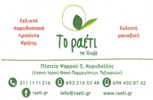 Στο κατάστημα μας «Κρητικά προϊόντα – Το ραέτι του Νικολή», στην Πλατεία Ψαρρού 5